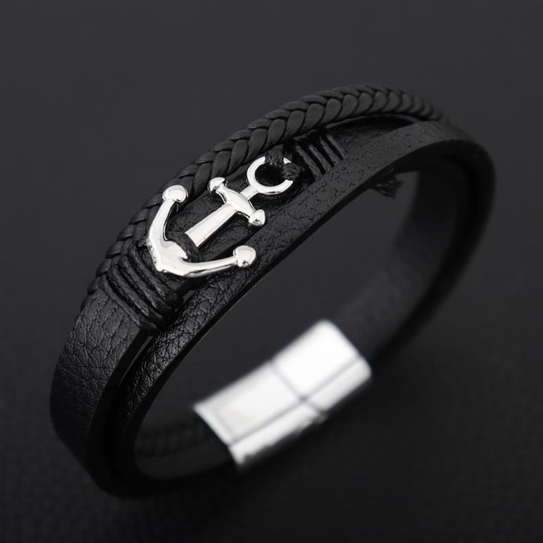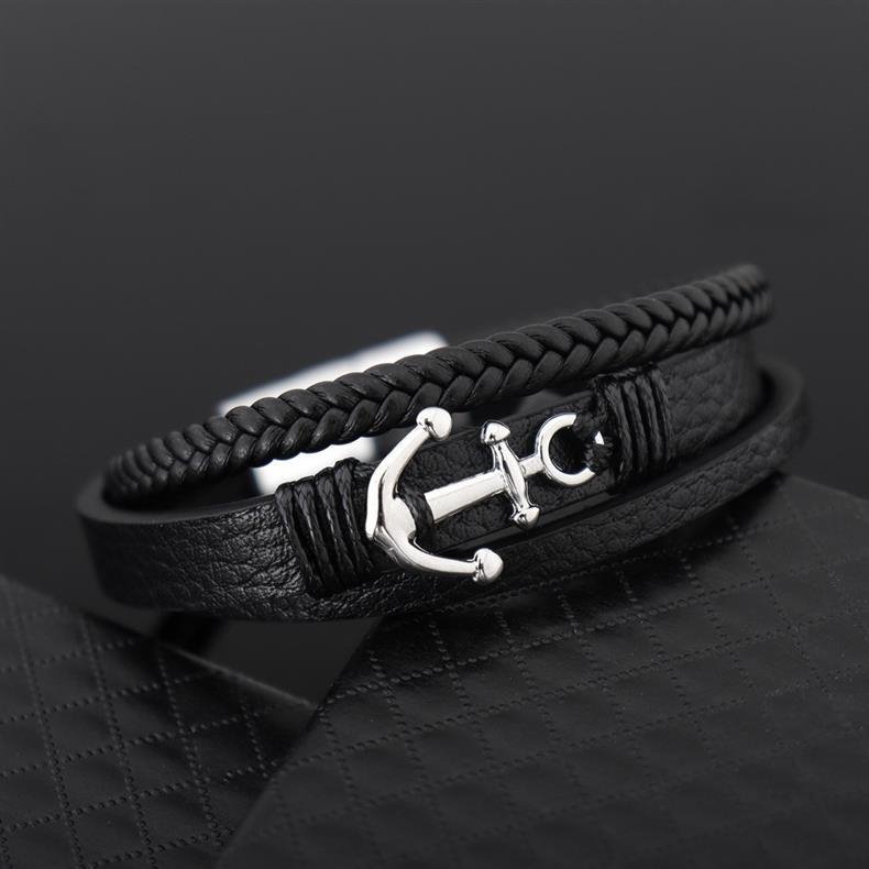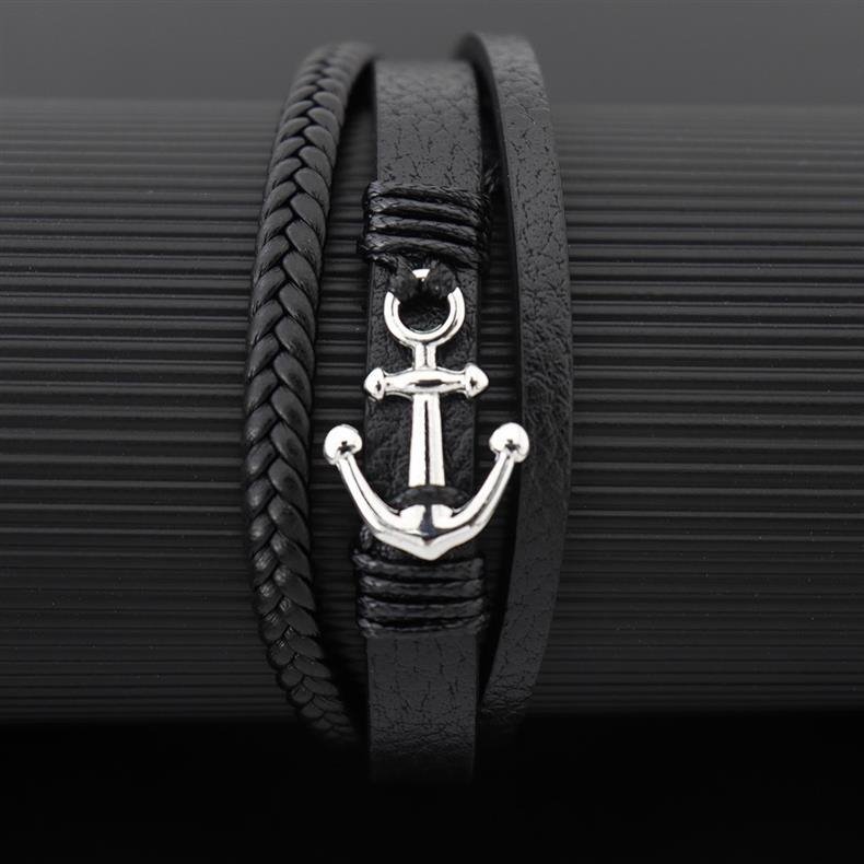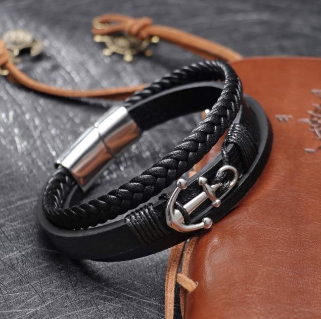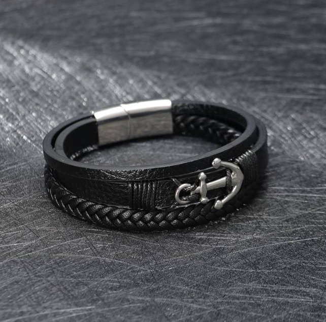 Elegancka Bransoletka Męska Skórzana Kotwica