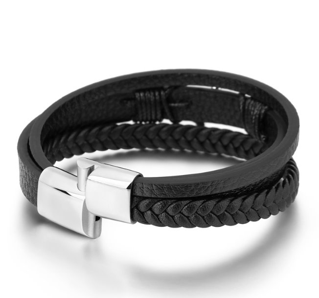 Stylowa bransoleta wykonana z wysokiej jakości skóry i antyalergicznej stali szlachetnej 316 L.