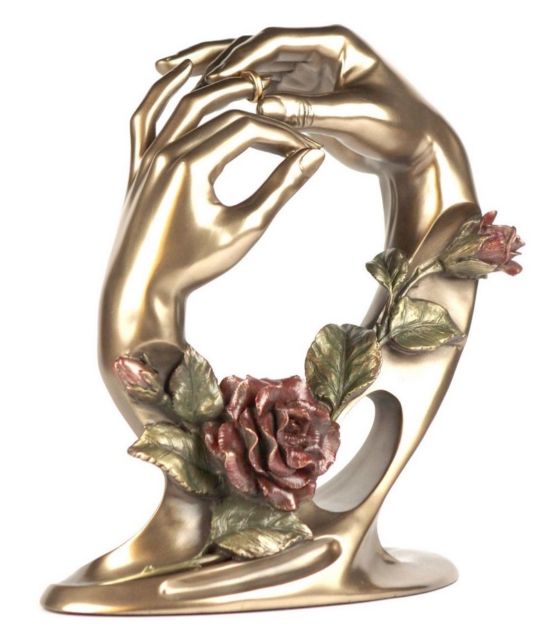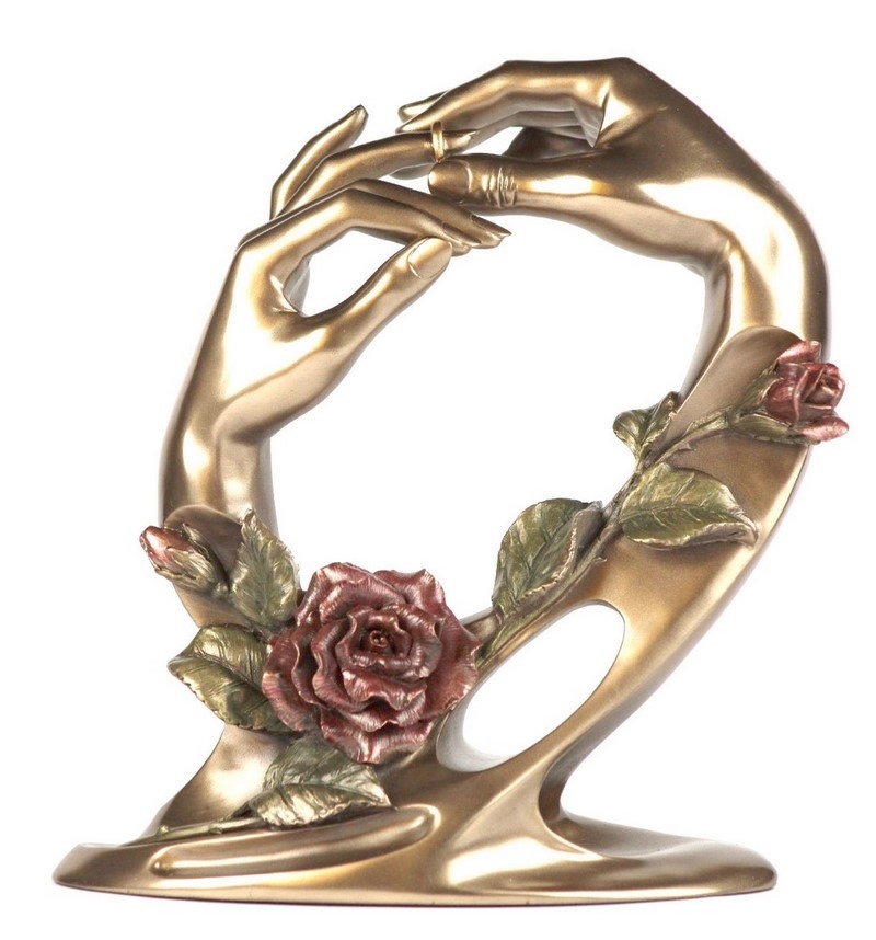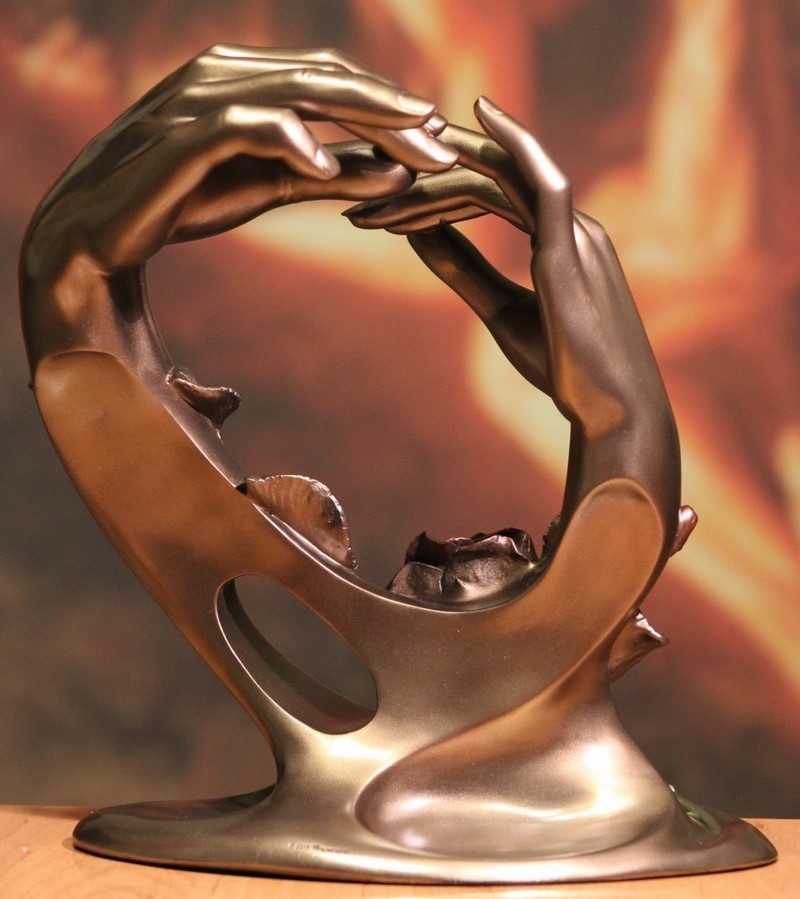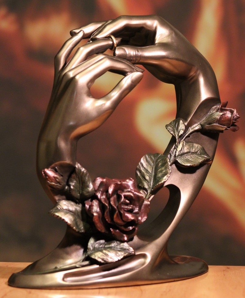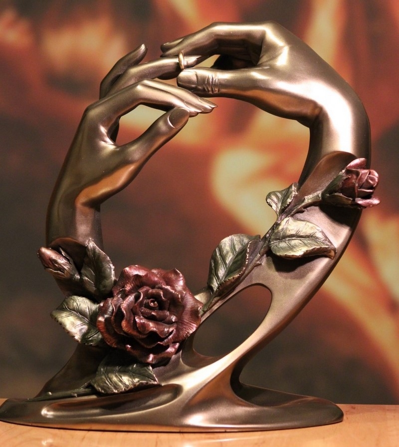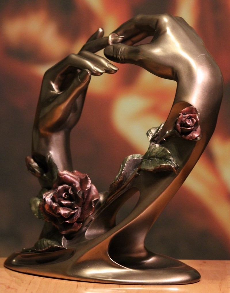 Rzeźba jest pokryta brązem i podklejona delikatnym materiałem nie rysującym mebli.