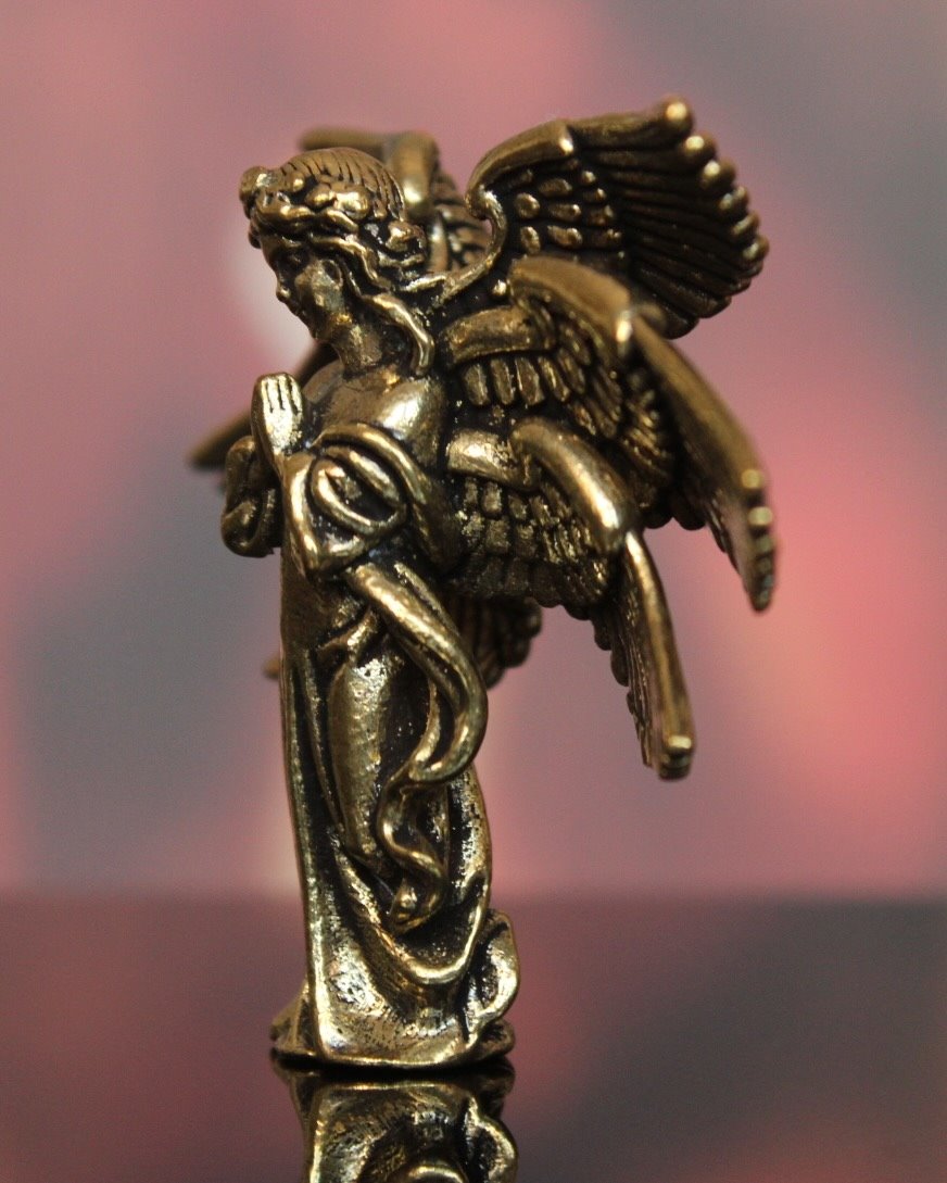 Figurka jest wykonana z mosiądzu.