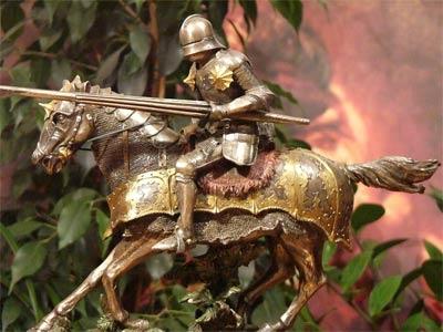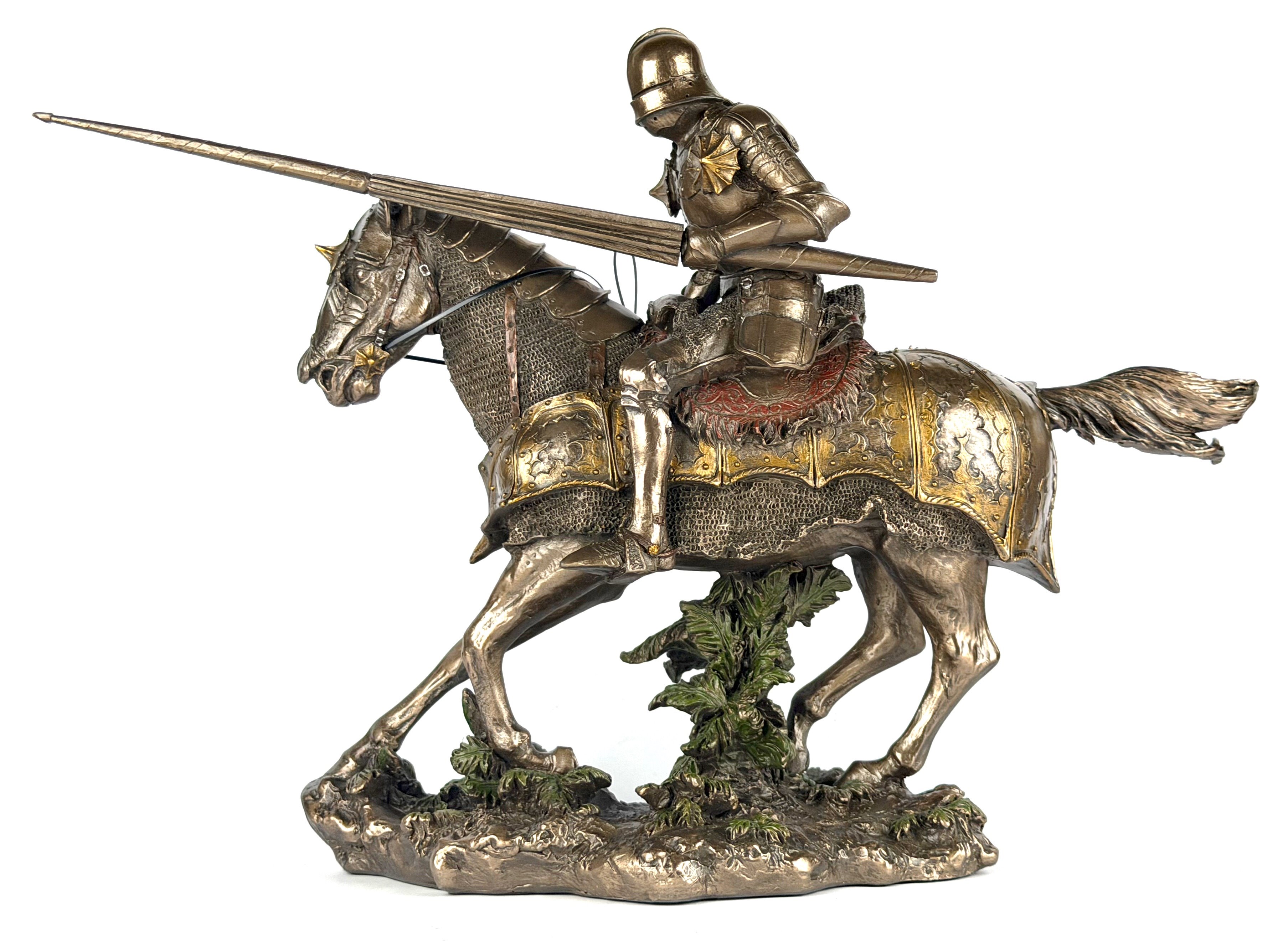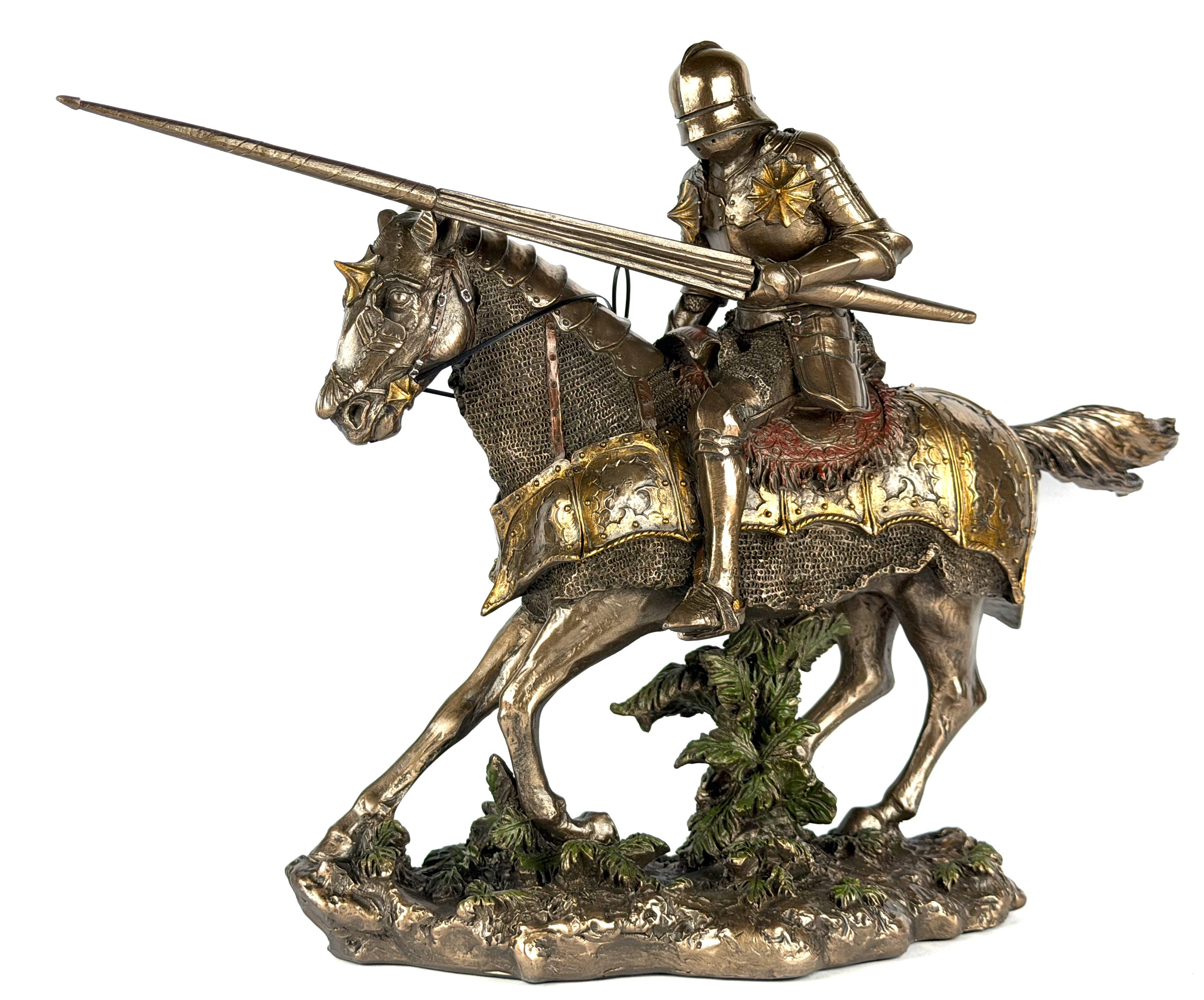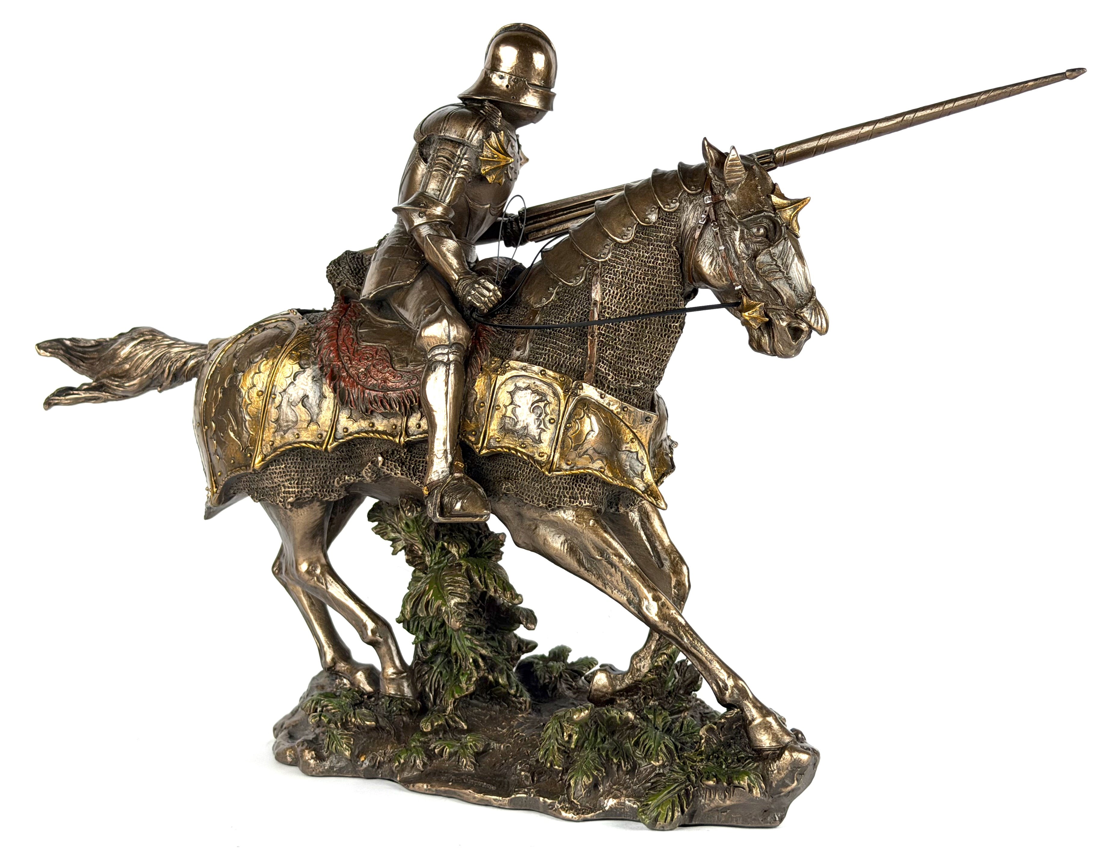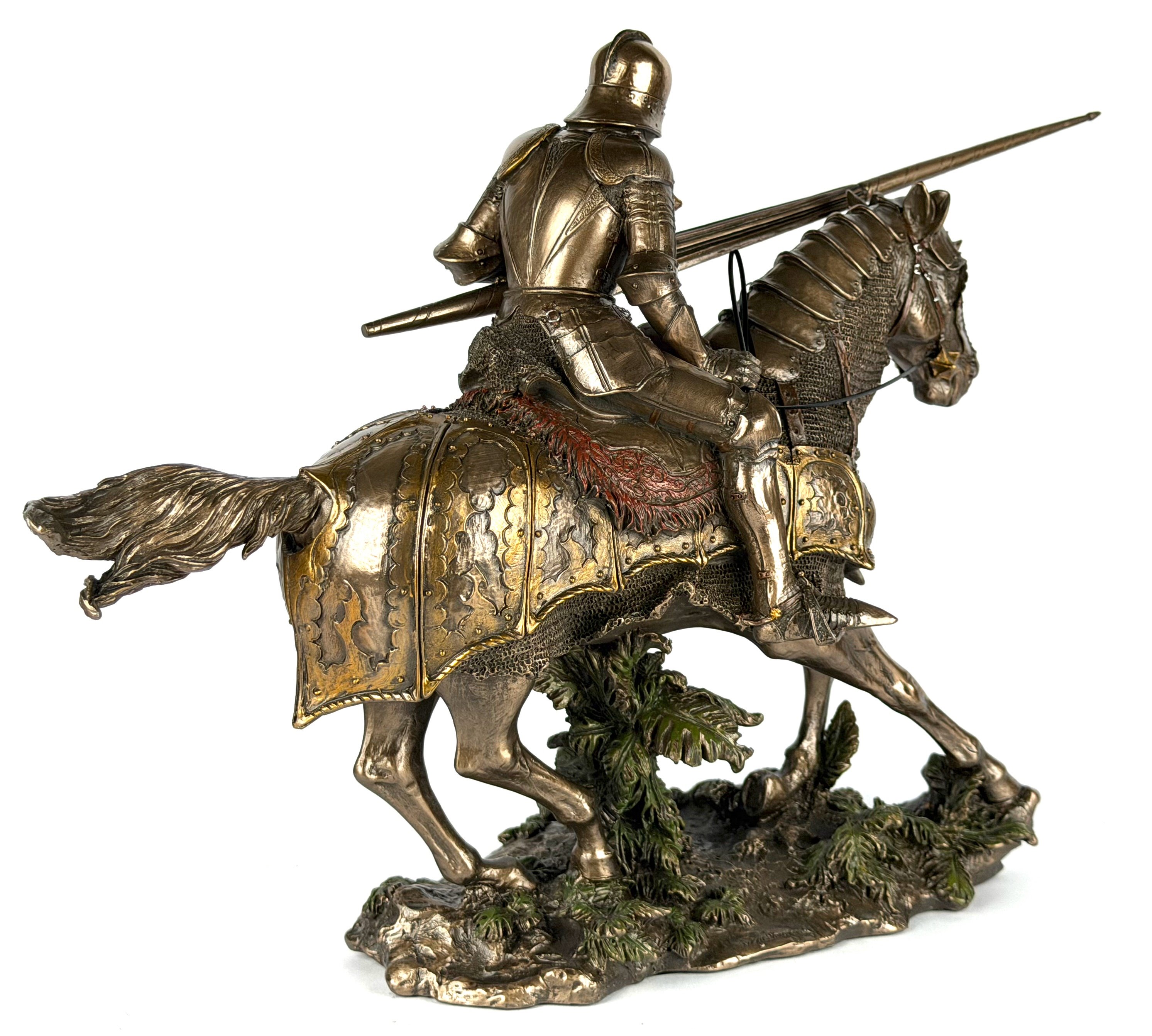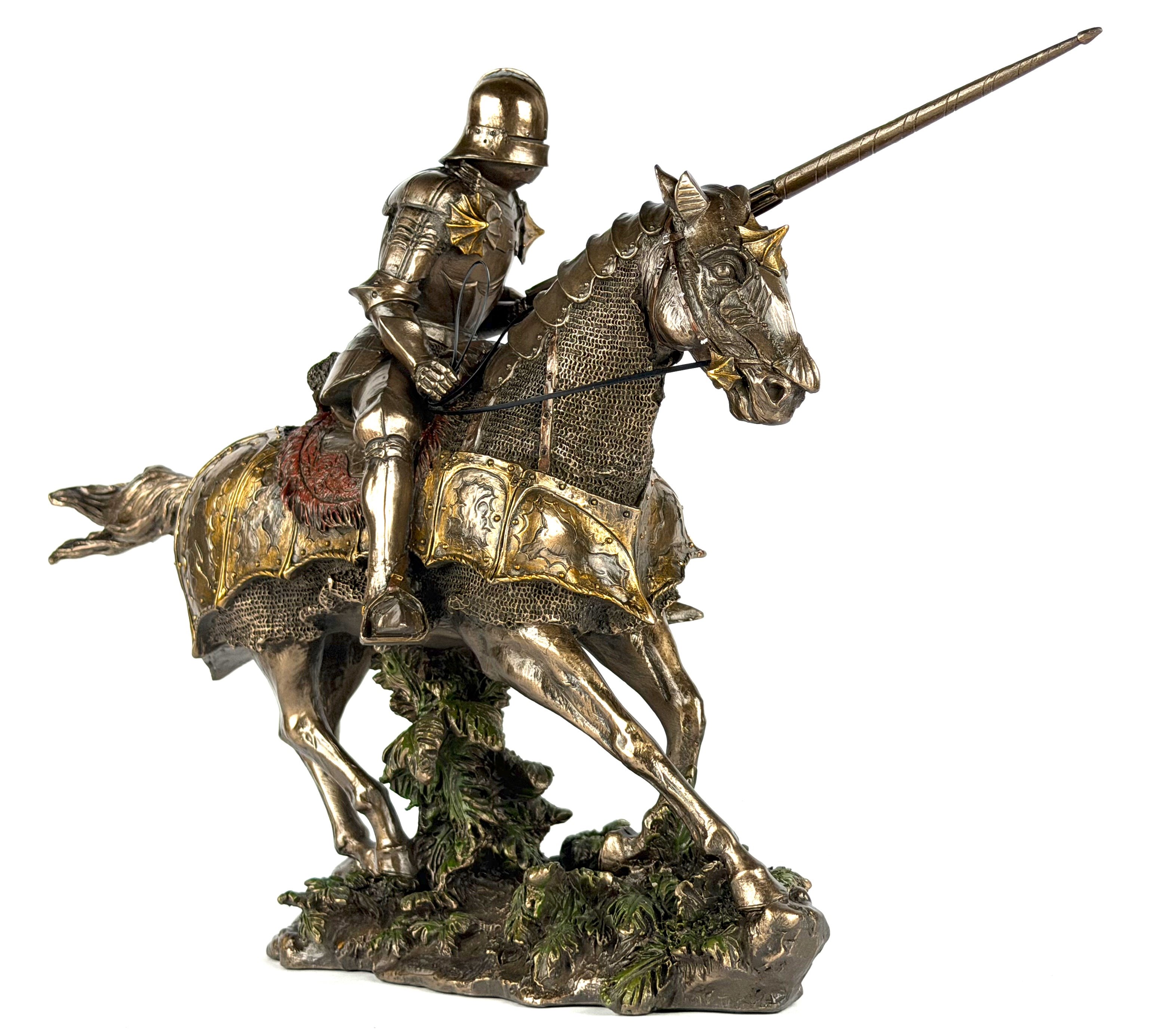 Rzeźba jest pokryta brązem, ręcznie malowana,