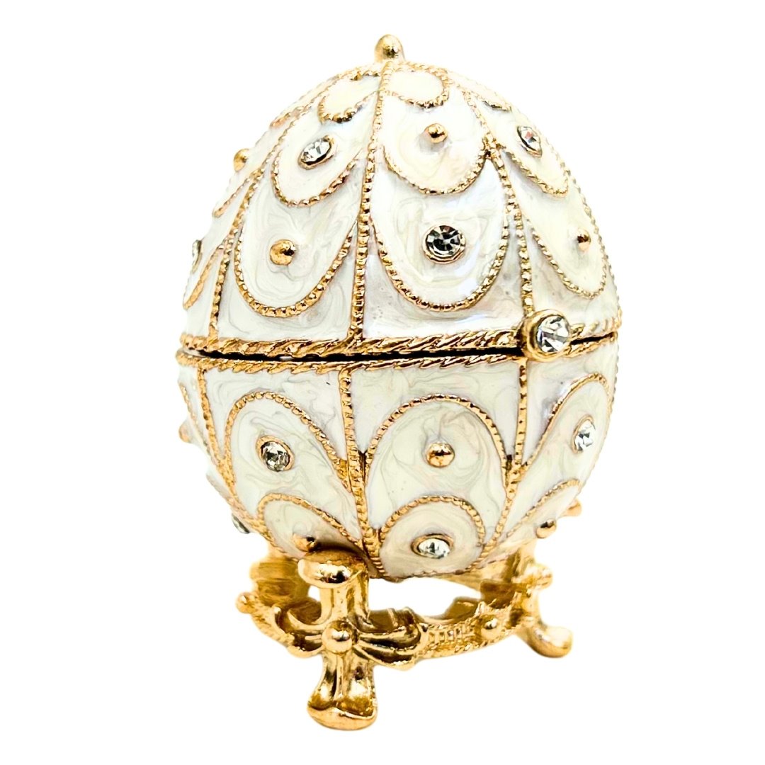 Ekskluzywne Szkatułka Jajo Fabergé Metalowa z Kryształkami - B0748-17WH