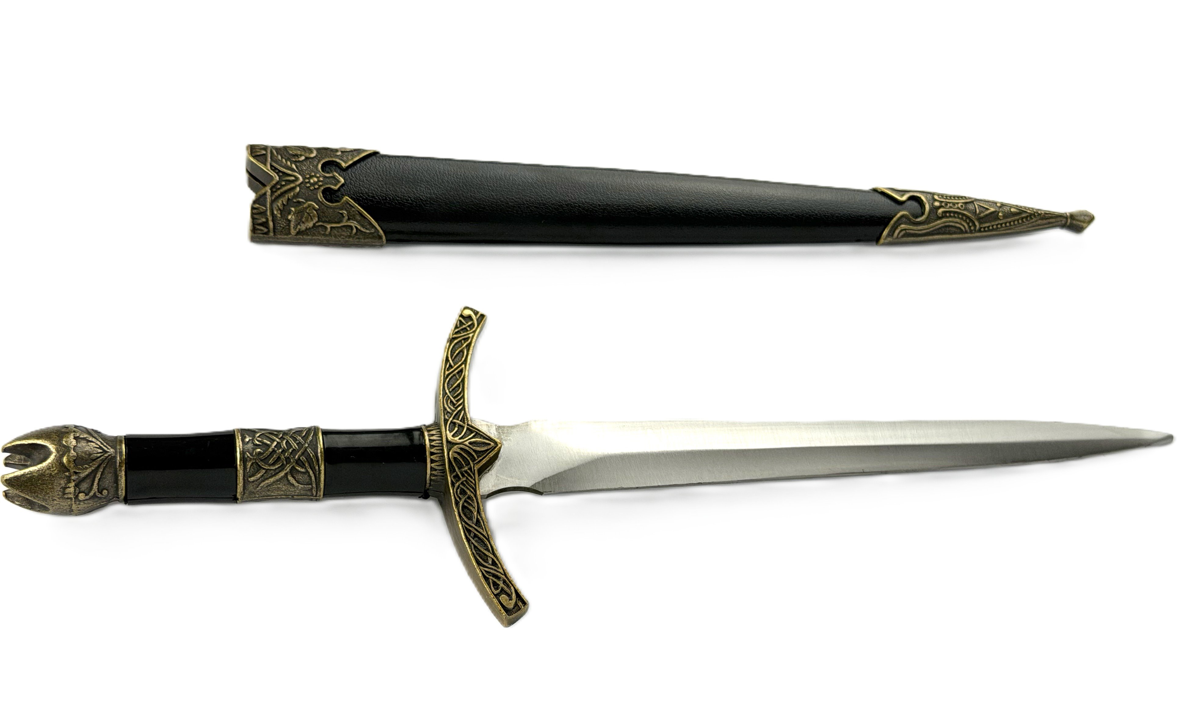 Piękny sztylet rycerski - replika - przedmiot dekoracyjny. To elegancki, unikatowy dodatek, który może być ciekawym prezentem, który przeniesie obdarowanego do czasu wielkich intryg końcówki średniowiecza.